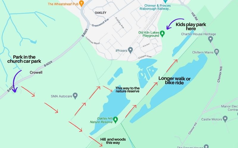 You can also park at Chinnor Railway if you are looking for a shorter walk. The stretch from Crowell to the nature reserve is quite long for little legs.