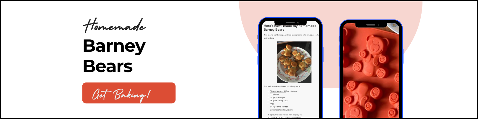 A pack of 5 Barney Bears is £1.25, making each bear 25 p. With my homemade bears, they’re 15 p per bear. I’ve slightly overestimated costs below. You could probably make them cheaper if you choose cheaper ingredients.